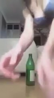 После тяжелого дня в офисе девчонка зашла в ларек к дома и купила себе бутылочку пивка. Не то чтобы она планировала что-то с ним делать кроме внутреннего употребления, и как только любимый сериал под пивас кончился, бутылка отставилась в стороны, но ненадолго. Глаза долго смотрели на нее, и тут в голове возникла шикарная идея. Включив камеру (видимо для врачей скорой помощи) она успешно попыталась сесть на стеклянный сосуд и прыгала на нем, а как только мышцы ног устали, пришлось пихать бутыль рукой, лежа на спине. Вот такой вот досуг одинокой девушки.