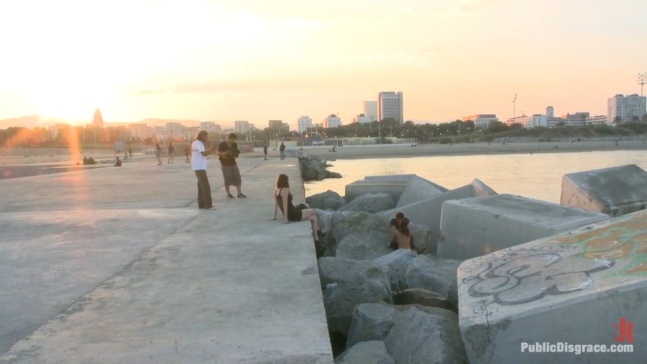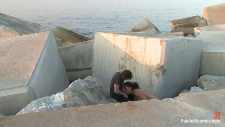 Красивая сексуальная дама просто обожает унижения во время секса, точнее она любит когда с ней обращаются как с вещью. Девушке связали руки и заставили пройти по оживленной улице. После чего малышку отымели в задницу сначала на берегу, потом в баре. Девка и ее товарищи получали удовольствие от публичного секса (добавляет адреналина в кровь), а окружающие люди просто смотрят и не могут отвести глаз.