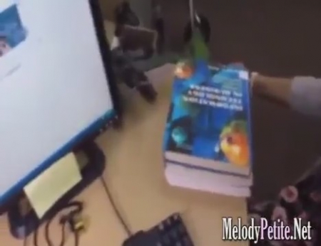 Продавец с экшн-камерой на голове принимает заказы. Подошла одна странная девушка с книгами, попросившая найти по ним информацию в интернете. Компьютеры стоят в подсобном помещении, куда продаван и позвал простушку, согласившуюся зайти внутрь. Там парень действительно сел за компьютер, но каким-то образом так получилось, что он оказался сидящим на стуле, а клиентка отсасывающей его большой член в закрытом складе. Все он снял от первого лица и даже то, как телочка в очках проглотила его сперму, он вытер хуй вырванными листами из ее книги.