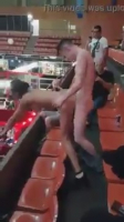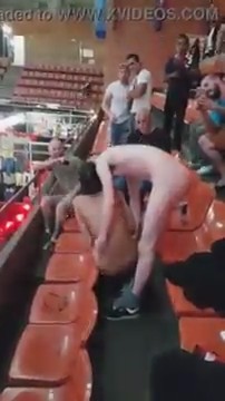 Пробравшись на ряды стадиона, голые извращенцы прилюдно занялись сексом. Их не смущает целая куча народа вокруг, откровенно старые люди, а охрана не торопится устранять помеху порядку. Случайный свидетель с камерой, купивший билет на это злосчастное мероприятие сразу достал телефон, чтобы запечатлеть крутой видос для социальных сетей, разлетевшийся по всему миру, включая нас. От мощной долбежки эксгибиционистка сильно кончила, ее ноги затряслись от оргазма, а сама она чуть не упала на пол. Люди в конце возликовали - не каждый день увидишь шоу после шоу.