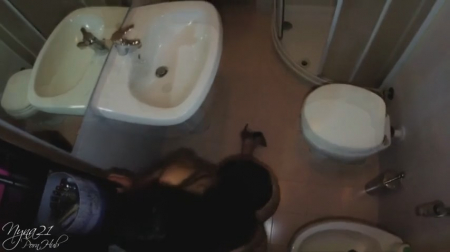 Сортирные любовники закрылись вместе в совмещенном санузле, где есть и унитаз и биде и раковина с душем, обычный такой туалет. Парень закрепил на голове камеру (эта срань записала звук только в левом канале), а чикуля лишь загнулась рачком после отсоса в ожидании ствола в попку. Добавив пару миллилитров смазки на анус, чувак сразу воткнул пенис в анальную дырку, обойдя стороной писечку. Очень удобно, когда у твоей женщины красный день на календаре. Кончил он глубоко в анал, да так основательно, что оттуда обратно сперма не вылилась, даже после ковыряния внутри большим пальцем.