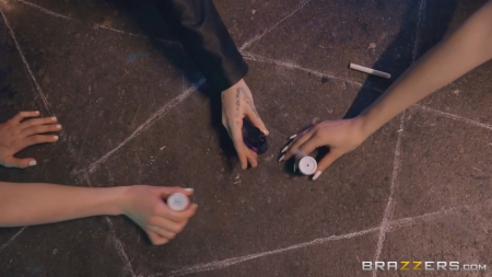 Голодные до секса готички проводят обряд. Нарисовав пентаграмму, разместив свечи, определенные зелья, как написано в книге, они принялись вызывать мужчину, прося дьявола дать знак или предоставить какого-нибудь красавчика с хорошим членом, чтобы он смог удовлетворить похоть пуссикрафта хотя бы одной из них. Делали брюнеточки это под громкую музыку, которую выключил сосед, задолбавшийся пытаться уснуть в непростую ночь. Одну из присутствующих осенило: "мужчина придет", так это он и есть, тот самый, предназначение сбылось. Главной зачинщице досталась участь воспользоваться даром, спрятанным в штанах, остальные остались смотреть как человечки трахаются.
