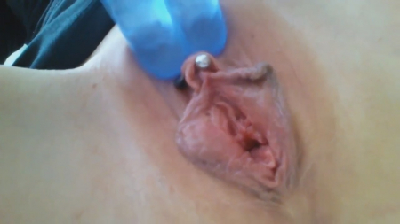 Симпатичное "раскрытое" влагалище с проколотым клитором терпит вибрацию от громкой синей игрушки, снимаемой крупным планом. Весь процесс нутро сокращается, предостерегая хозяйку о предстоящем оргазма. К самому финалу это стало более очевидно, появилась прозрачная жидкость, полившаяся в сторону ануса от дребезжащего пирсинга, дающего дополнительное удовольствие девушке.