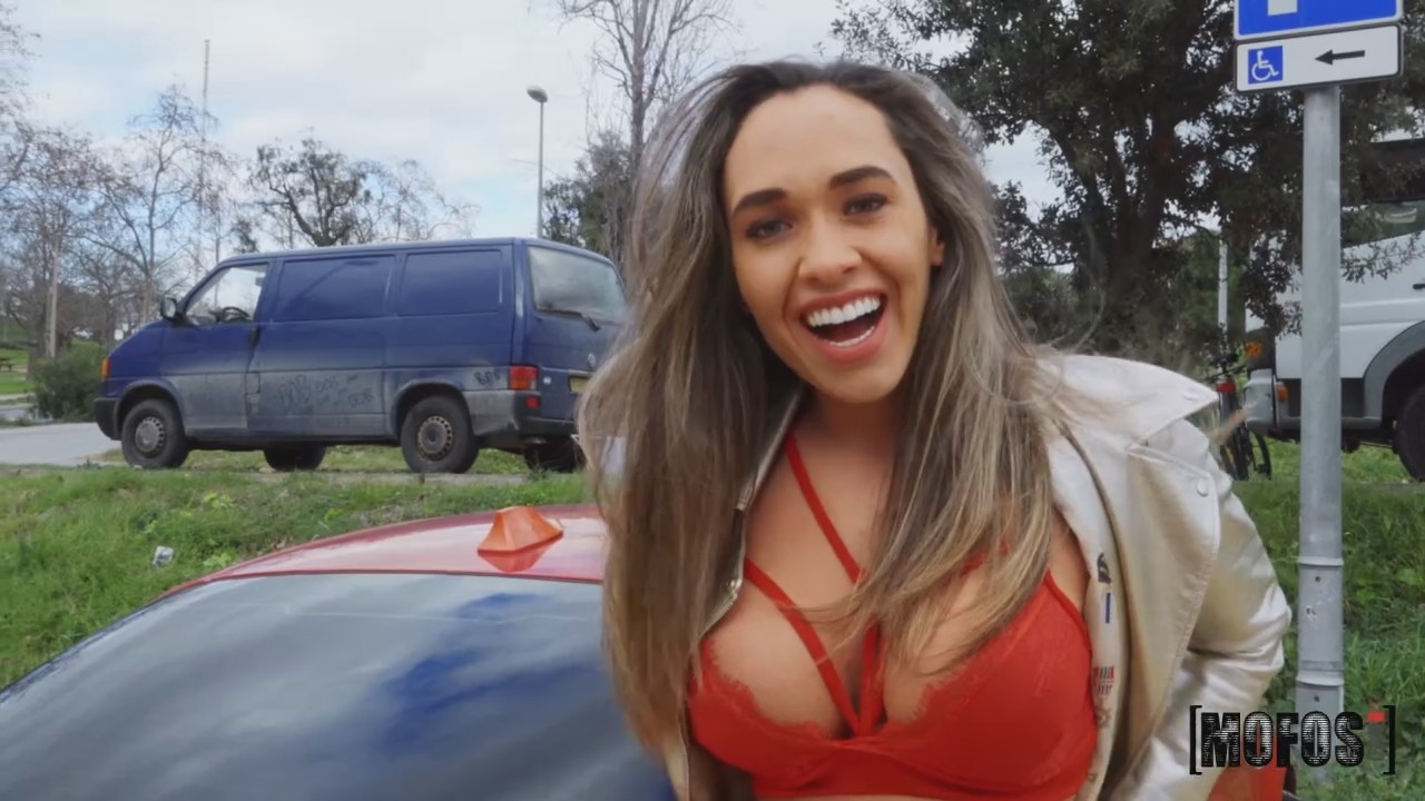 Мотоциклист с камерой на шлеме собирался по своим делам, ненадолго остановился передохнуть на стоянке. Там он заметил замешкавшуюся незнакомку со свернутым пледом, собирающуюся на ближайший пляж. Прям видно как она любуется своей задницей, обтянутой джинсами, выставляет ножку и прочее. Совершенно случайно дурочка захлопнула багажник и тачка полностью заблокировалась. Как же так, теперь никто не увидит прекрасное создание? Мужчина решил не бросать фитоняшку в беде и отвез до ближайшего канала, где вдоволь налюбовался подтянутыми формами и как следует выебал сисястую шалаву до наступления темноты.
