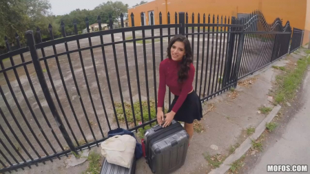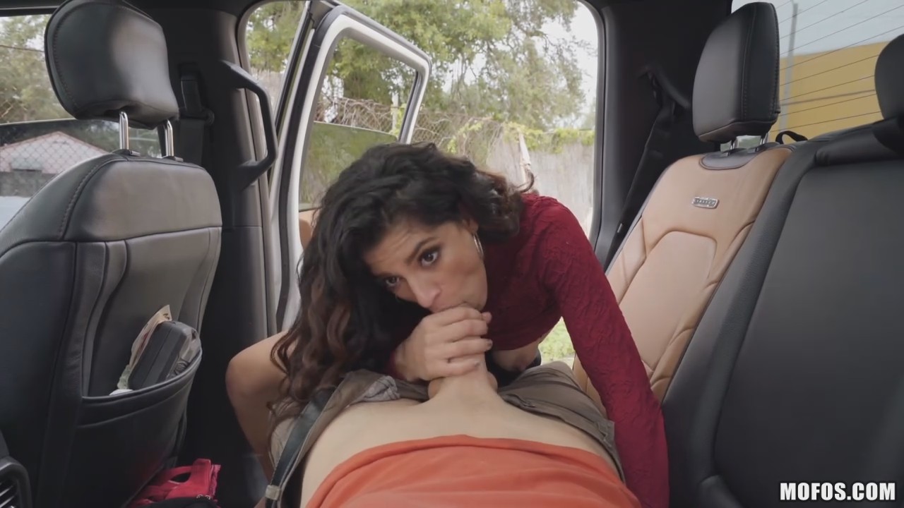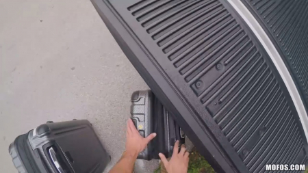Катаясь по своим делам на большом пикапе, парень заметил какую-то кучерявую симпатягу, пытающуюся закрыть чемоданы, из которых вываливается одежда и нижнее белье. Ну как тут не помочь бедняге, собравшуюся переезжать без машины, затянется надолго. Получив хорошее отношение, незнакомка решила отблагодарить водителя, сперва показав сисюли, а потом встав рачком на сидении автомобиля. Прямой знак на продолжение получен и исполнен, а героиня добралась до места назначения в целости (ну если не считать мимолетный незащищенный секс) и сохранности. Или нет?