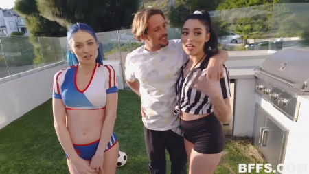 Рано или поздно этот день все равно бы настал. Красавица-капитан футбольной команды предупредила соратниц, что сегодня последний день, который подруги проведут вместе. У синеволосой футболистки созрел план. Набрав номер знакомого, она предложила ему подняться на мини-площадку для тренировки и угостить малышек членом. Сразу три симпатичных телки на одного, неплохой бартер. Поднявшись к парню в номер, девушки отметили уход капитана из команды групповым сексом, став еще ближе друг к другу. Зато настроение ни капли не испортилось от грустной новости.