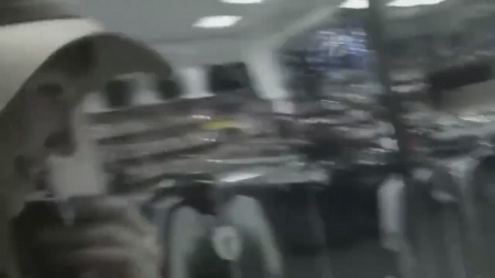 После отсоса пошла прогуляться по магазину со спермой на лице