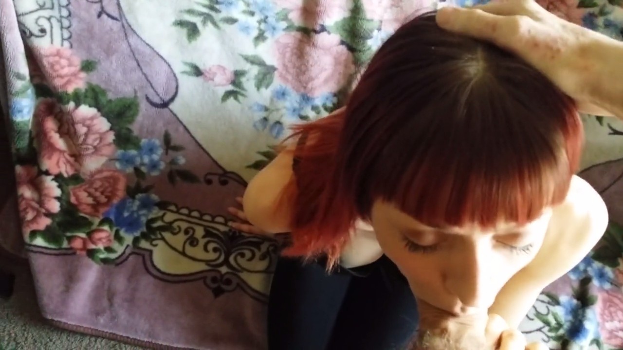 Симпатяга с пирсингом на лице прилунила попочку на кровать, позвала любимого с камерой чтобы он запечатлел как худышка старательно орудует ротиком, рукой и сильными щечками, работающими как пылесосик. От этих больших глаз невозможно оторваться, она преданно глядит словно на нас с вами, повторяя ритмичные движения головой. Рыжику очень нравится чувствовать горячую плоть, этот мощный хуй, проникающий не слишком глубоко чтобы вызвать неприятные позывы. Классные ощущения скольжения губ по стволу заставили ненаглядного быстро испытать оргазм, напрыскав белкового коктейля за щеку рыжей симпатяге.