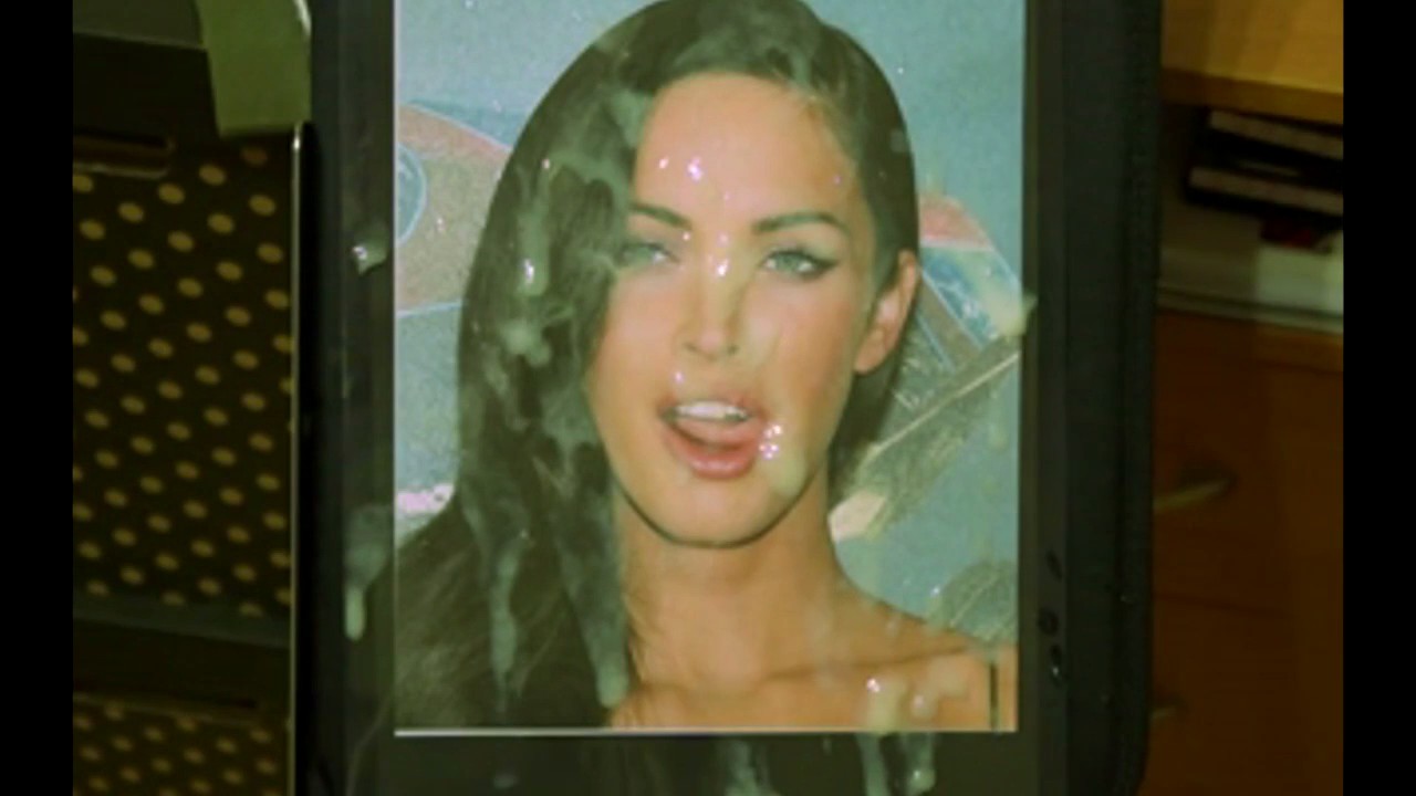 Два, уже ставшие взрослыми, мужичка собрались вместе и дергают пипки на фотографию известной актрисы, которой поклоняются тысячи мужчин со всего света. Кончили лютые извращуги почти одновременно, тот что слева опередил на секунду, начав поливать спермой симпатичное личико телочки из фильма Трансформеры, защищенное стеклом и рамкой. Второй подоспел почти сразу, вылив содержимое яичек туда же. Закончив, друзья показали как семя стекает по фото лица Меган Фокс.