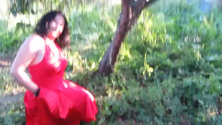 Модник в синем привел подругу за последние деревенские дома. Он тут не местный и ему совсем не нравится как свора соседских собак гавкает за ближайшими заборами. Девушка 30+ ответила, что не знает что будет делать, а тот, в свою очередь, предложил сесть на коленочки и сделать минет. Вот наглец! Но баба в платье согласилась обслужить дорогого городского гостя, порадовав минетом. Сисястая все время оборачивается, ведь не только псы могут помешать, но и местная детвора с алкашами шарится где попало. Обкончав указанные выше натуральные груди, парень вернулся и нассал на них, промочив красивый наряд. "Ну и как мне домой идти?!" - взволнованно, но с улыбкой спросила местная.