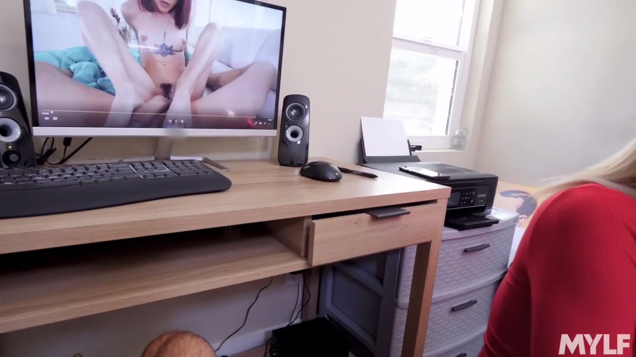 Белобрысая вернулась домой пораньше. Идя поздороваться с муженьком, она услышала через приоткрытую дверь стоны из порнухи, которая у него включена на компьютере в кабинете. Естественно, тот сидел и гонял шкурку на видос с клевыми телками. "Привет" - сказала дорогая, "а чем ты тут занимаешь?", начала расспрос симпатичная баба с пробивающимися сосками через одежду. "Как что, порево смотрю, вот дрочу еще заодно" - парировал супруг. Девушку приписали к милф, но на момент съемок ей не могло быть больше 27 лет, так что обойдемся без категории как бы старо не выглядела актриса. Она, посматривая на экран, доставила удовольствие как в видео, отсасывая, помогая рукой и шоркаясь различными частями тела, чаще сиськами.