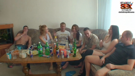 Шумное застолье на большом угловом диване явно говорит об интересном продолжении домашнего банкета. Чехи любят угорать по веселым групповухам, даже не только молодые люди как эти студенты, но и прочие личности постарше. Ребята приняли лишнего на грудь алкоголя, телочек развезло, они стали раскрепощенными, а парням дай только повод присунуть. Незадолго после раздевания цыпочек, все превратилось в мешанину из тел, партнеры меняются друг с другом, телки стонут, пацаны шутят, чаще всего ебут рачком легкодоступных подруг, а также отправляют члены в оральное плавание и не одной одновременно.