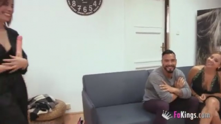 Супруги нашли объявление, в котором требуется мужчина для съемок. Она вместе с ним отправилась посмотреть как будет происходить процесс, сделав его более пикантным и очень интересным. Они вдвоем пообщались с режиссером, после чего вошла молоденькая самка, которой понравился накаченный симпатяга. Ее и не смутила рогатая жена, ведь все происходит по ее просьбе, это даже завело. Видно как женщина еле сдерживается чтобы не начать мастурбировать, только стеснение остановило ее, ножки перекладываются одна на другую, особенно когда муженек яростно начинает долбить другую девку с красивой попой.