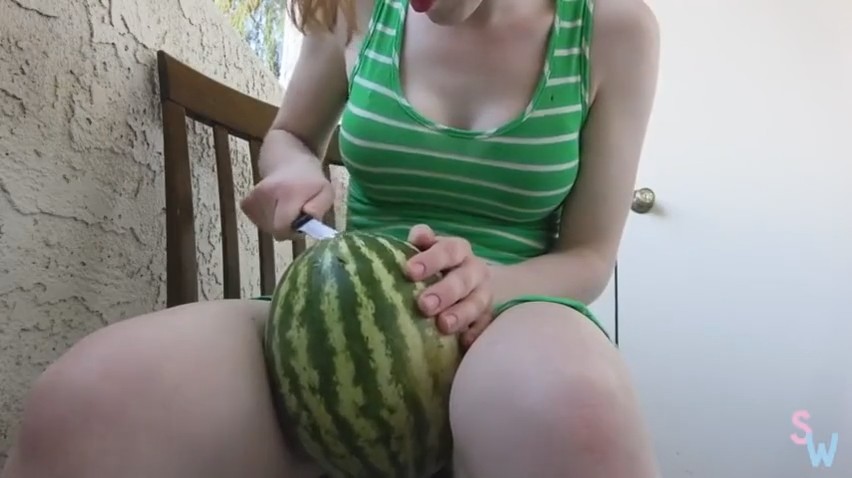 Настало время ахуительных видосов. Трансвестит вышел подышать на балкон, захватив с собой небольших размеров арбузик. Наверное, он такой сладкий и мягкий - подумал извращенец, сделавший дырку ножичком в данной зеленой ягоде. Его член уже вовсю торчит из-под женской одежды и ведь еще нашелся кто-то, кто запечатлел все на камеру. Может подружка, а может дружок - неважно, оператор стал свидетелем секса/мастурбации с арбузом, после которого главный герой в него кончил, вылил сперму из дырки себе в рот, а потом разрезал на дольки, вкусив вряд ли улучшившуюся красную мякоть.