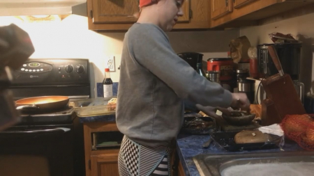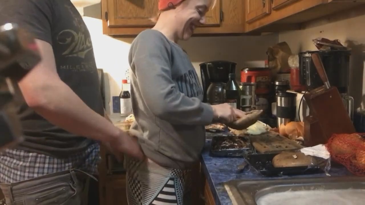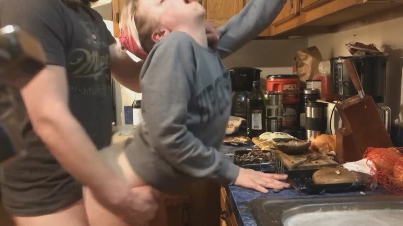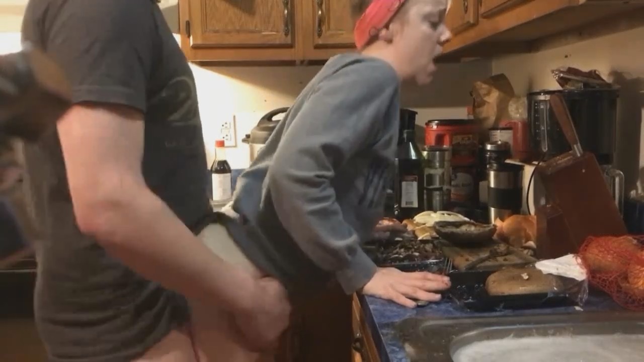 Готовящая ужин домохозяйка услышала как сзади подкрадывается любимый и заулыбалась. Все потому, что он пришел с приспущенными штанами, резко сдернул ее штаны и вставил член, заставив оторваться от домашних хлопот на кухне. Лоно девушки быстро намокло и смогло впустить в себя сожителя. Она выгибается буквой "зю", спина напоминает кофейных червей из киноленты "Люди в черном". От удовольствия и для удобства героиня становится на цыпочки, поднимаясь чуть выше. И снова нет никакого окончания, запись резко обрывается в процессе простого семейного времяпрепровождения под телевизор, который никто не смотрит.