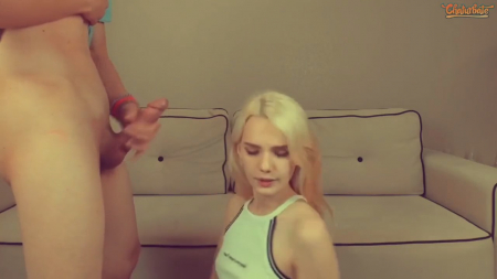 Милая юная дева вместе с приятелем решили объединить усилия для зарабатывания крох на интернет развлечениях для взрослых мальчиков и девочек. Сегодня она приготовила сюрприз для партнера, попросив снять штаны и встать на диван раком. Парню такую просьбу было слышать в диковинку, но он сделал требуемое, догадавшись, что нужно подбрить жопу. Блондиночка прильнула языком к задней дырочке, не побоявшись сунуть туда большой палец, а второй рукой наяривала писюн. В финале она села перед молодым человеком, ожидая камшота на лицо, которым похвалилась перед любительской камерой и вытерлась салфеткой.