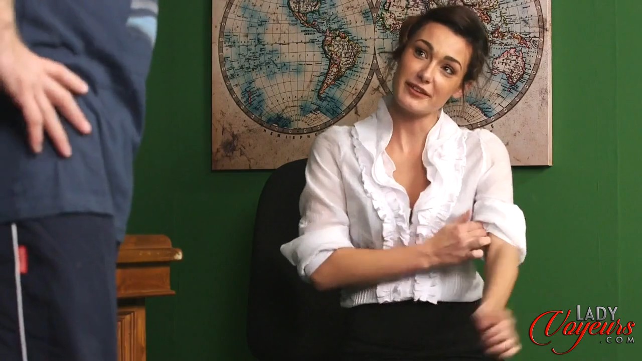 Молодая учительница обнажилась перед своим учеником, тем самым возбудив юношу. Молодая женщина томными взглядами пожирала парня, поа тот дрочил и смотрел на прекрасную диву. Парень подрочил и кончил.