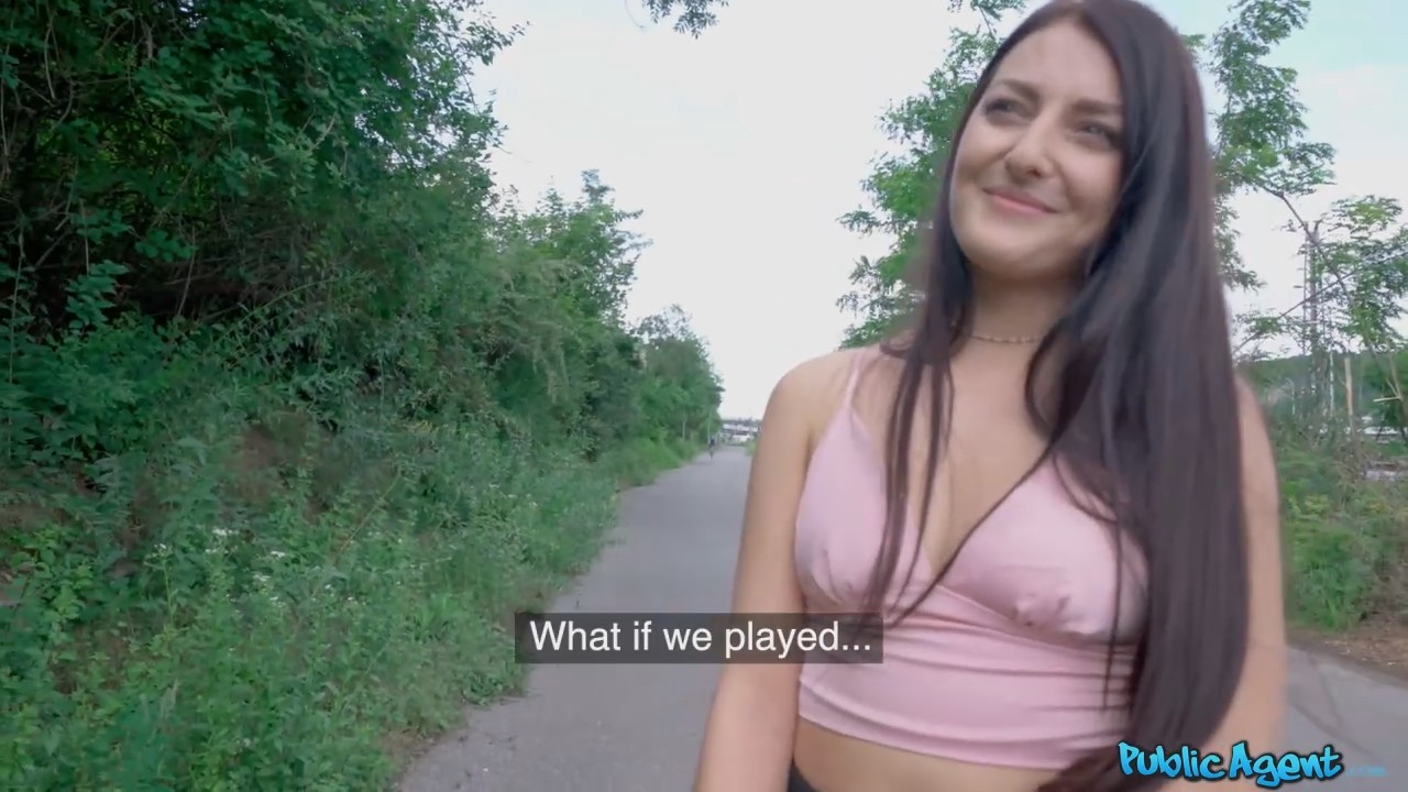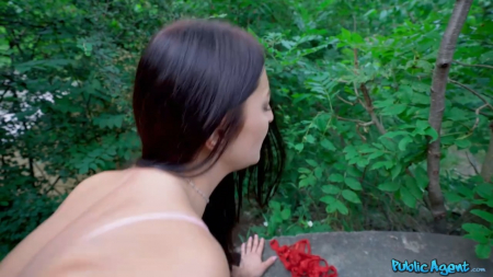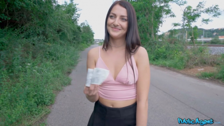 Незнакомец лоб в лоб столкнулся с прохожей. Он сразу стал тараторить о том как лицо девушки знакомо, может она знаменитость или инстаграм-модель. Известный прием комплиментов ради собственной цели. Строящая из себя целочку брюнетка смущенно принимала деньги из рук в руки, пока не появилась приличная пачка. Только за нее она показала сиськи на дороге. Но еще за хорошую сумму согласилась пройти чуть дальше в парк чтобы отдаться незнакомому мужику с камерой. Да лучше бы он нормальную телку запикапил и сводил на свидание, там бы еще дешевле вышло, а секс лучше.