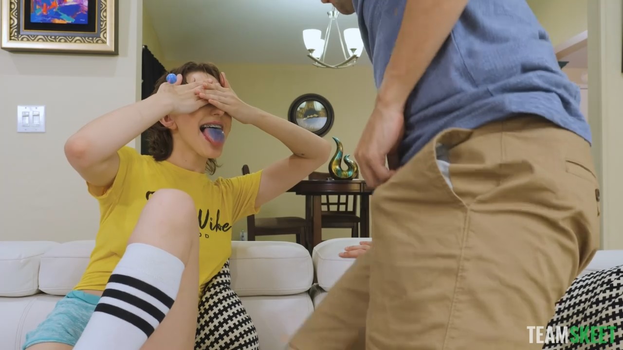 Пацаненок собирался весь день провести в приставке от сони, но кто-то его неожиданно отвлек своим визитом. Это была знакомая девчонка с чупа-чупсом между брекетами. Она очень попросилась попасть внутрь и посмотреть чем занимается ее хороший друг. Подсаживаясь все ближе, девчонка надеялась что хозяин поймет намек, но ему некогда, он нажимает кнопки на геймпаде. Пришлось встать возле окна и махать руками, чтобы импровизированный стробоскоп отвлек игромана. Когда на гостью обратили внимание, она попросила положить ей что-нибудь на синий от леденца язык и закрыла глаза. Нетрудно догадаться что это было.