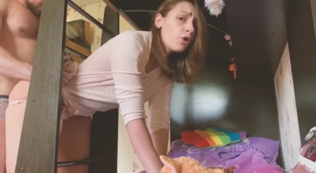 Девушка в трусиках убиралась в комнате своих детей. В соседней живет брат, который застал молчаливую сеструху застрявшей в лестнице двухъярусной кровати - она пыталась дотянуться до мягких игрушек в дальнем углу, прибрать их пока детишки утопали в ясли. Они так похожи тем, что оба молчат. Парень подошел сразу в трусах, стянул их с телочки и засадил сзади, даже не думая помогать выбраться из западни. Когда он кончил ей на копчик, то просто свалил, а сестра попробовала его сперму на вкус, слизав почти всю с задницы и в самых последних кадрах помахала ручкой будущему зрителю. Лайт износ какой-то.
