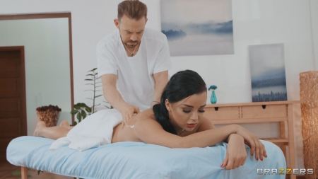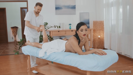 Клиентка разделась не заходя за ширму, легла на специальный стол, накрыв сверху задницу полотенцем. Пришел массажист, приступивший к работе. Он сразу оценил как было бы круто заняться с этой девой любовью, но углубился в работу и молчал. Вдруг черноволосая начала стонать от любого прикосновения, а чуть позже стало заметно как она пропустила руку под животом к киске и достаточно оживленно ее шевелит. Это был хороший знак. Мастеру было предложено поменяться местами и теперь он лежит на кушетке, а клиентка салона сидит на лице в 69-ой позе и наяривает ему пенис ртом. Дальше трах сперва в вагину, потом в анал и на самое интересное перед оргазмом мужчины брюнетка оставила свой сквирт, надрочив писю до сильных брызг на пол с хреном во рту.