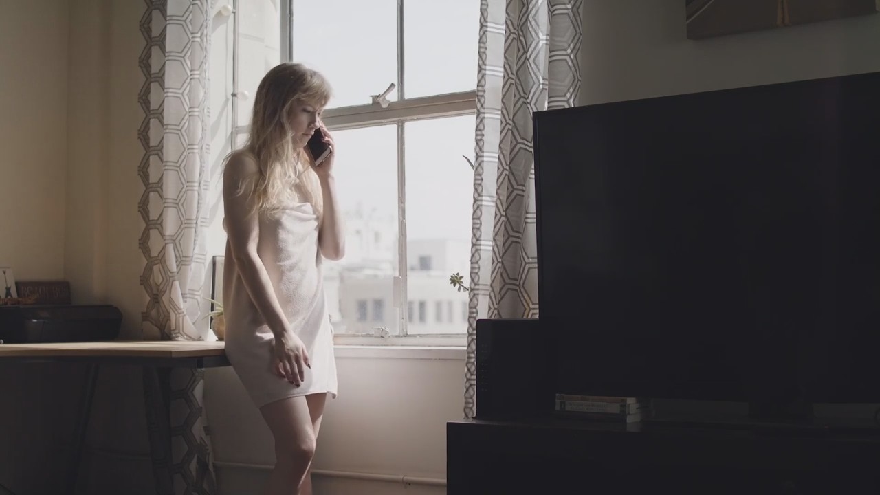 Прогулка чем ближе к дому, тем сильнее становится напряженной. Бегунья чувствует пронзительный взгляд на спине, но сзади никого нет. Чувство беспокойности кратно выросло когда девушка зашла домой и увидела на собственном столе две бутылки вина. Но ведь тут никого не должно было быть! В попытках успокоиться героиня пошла полежать в ванной, но и там будто кто-то следит. Тогда она позвонила бойфренду, описав странную ситуацию, но он только рассмеялся и попросил взять себя в руки. Не осталось варианта кроме как проспаться. Проснулась чикуля от сообщения на телефон. В нем маньяк отправил ее голой, причем это было снято совсем недавно, буквально только что. В панике девка выбежала одеваться из спальни, но там ее ждал на диване тот самый бойфренд. Происходящее оказалось розыгрышем и маленькая симпатичная шлюшка чтобы не ругаться страстно отдалась бородатому мужчине.
