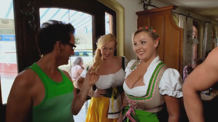 Тихую обстановку нарушили двое друзей, спрятавшихся в немецком баре от солнца. Мелкий чел просто умирает от жажды. Мужчина попросил барменшу немножко водички, облив себя и пол. Товарищу стало стыдно и он было хотел извиниться за его поведение, как вошли две грудастых пивных официантки, с которыми позорник стал обниматься. Это его старые знакомые, перебравшиеся из другого города в поисках достойной зарплаты. Что ж, видимо, жизнь у них начала налаживаться. Petra Dubska - главная героиня отчалила принять ванную и так получилось, что она приняла не только ее, но и член лысого посетителя, за чем их застукал взбалмошный знакомый. Если кому нужно имя второй официантки, то оно вроде Angel Wicky (есть достаточное количество роликов с ее участием на сайте), а псевдоним зрелой, увы, не подскажем.