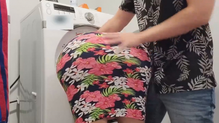 Домохозяйка запустила одну стиральную машину, осталось загрузить и вторую бельем. Разговаривая по телефону дурная баба даже не заметила как застряла, когда засунула половину туловища к барабану. Ну все, приплыли. Слезные крики о помощи похотливому сыночку и никакой попытки вызволить маман. Вместо этого пасынок засунул пальцы ей в дырки, а после и хуй вставил, заставив так и дальше стоять в неудобно-загнутой позе. Даже интересно, это силиконовый пердак или как такое вообще возможно?! Молодчик оприходовал даму сзади и накончал на булки, все прямо в личной прачечной.