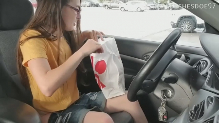 В поисках оптимального места девушка за рулем приехала на парковку. У миленькой малышки в очках есть с собой в сумочке вибратор и розовый самотык. Начала мастурбацию она с первого. Несмотря на довольно малолюдное местечко, очкарик все равно оглядывается по сторонам, чуть приподнимая головку как суслик, отчего только сильнее палится. К вибратору присоединилась вторая игрушка, которую она запихнула внутрь, так и кончив на водительском сидении собственного автомобиля.