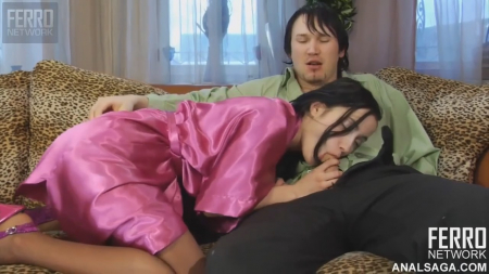 Брюнетка в черных чулках дала трахнуть себя в анал