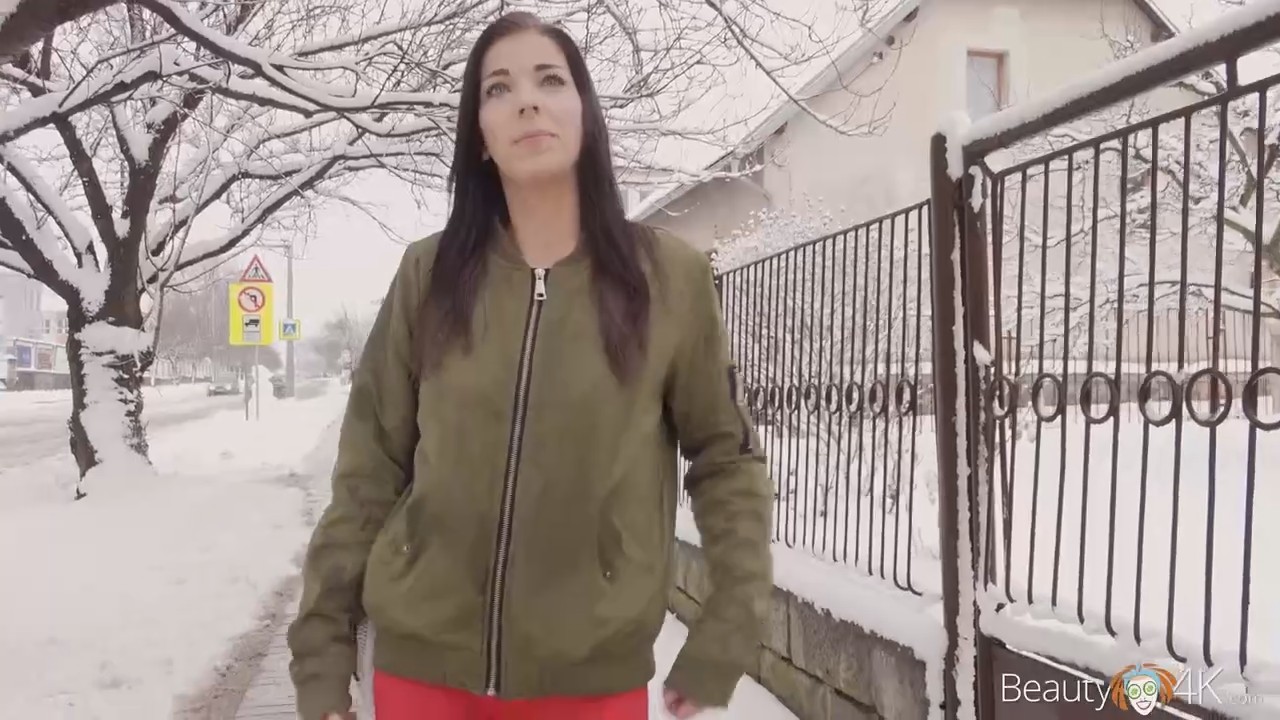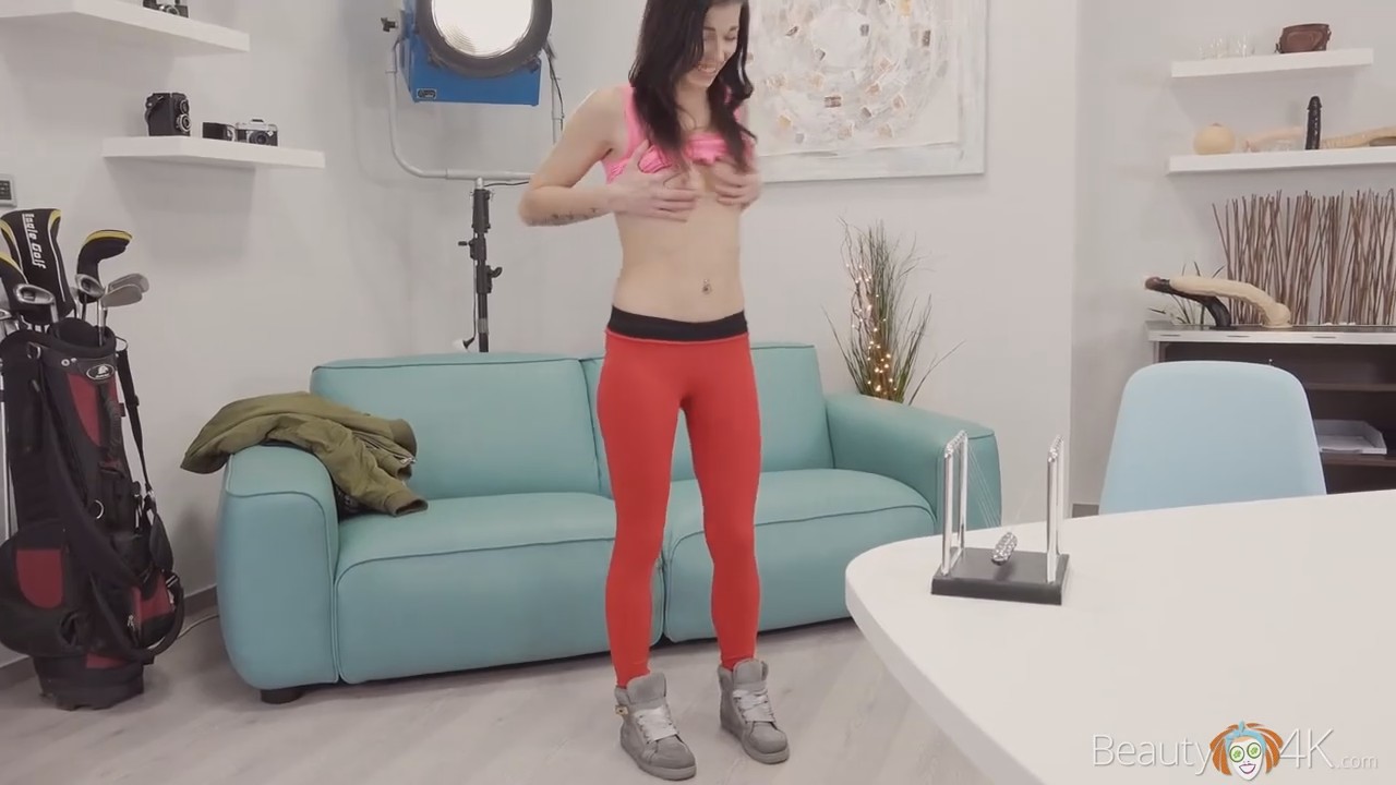 Прохожая была окликнута незнакомым мужчиной. Он рассказал о своем занятии подбором моделей для музыкальных клипов и, кажется, у него появился неплохой вариант, вот он, стоит перед ним в обтягивающих леггинсах. Она и правда любит танцевать, сейчас идет из спортзала домой. Забегая вперед, красавица сказала, что есть молодой человек и все интимные предложения должны быть отвергнуты в зародыше. Видео бы не было, если бы она в итоге не согласилась зайти на студию попить горячего кофе и обсудить возможность попасть в клип. Только деваха попала пиздой на хуй балабола, став откастингованной потаскухой в разорванных штанах.