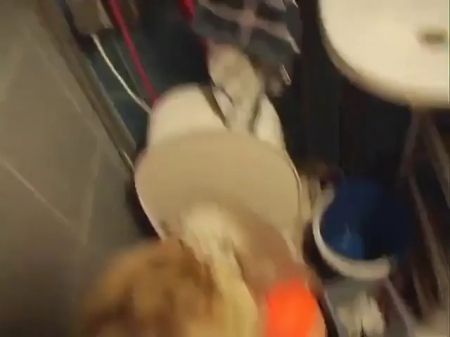 Симпатичная девушка пошла в туалет по своим делам и начала дрочить. За этим занятием девушку застает ее друг, который зашел в туалет с видеокамерой. Конечно же, мужчина начал задавать подружке вопросы - к примеру, как часто она дрочит и так далее, после чего просит возбудить его. Возбужденная сучка страстно сосет член, а потом трахается с бойфрендом.