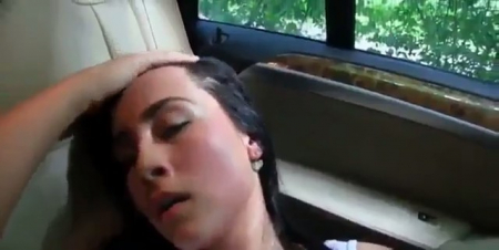 Телка громко пыхтит на заднем сидении