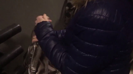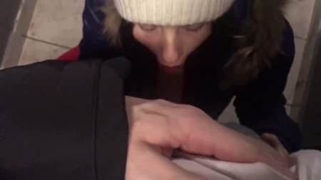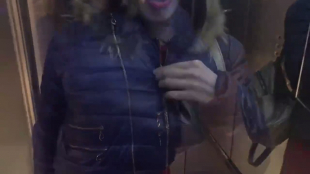 В ночное время парень вышел покурить, но его перехватила соседка с этажа. Она поинтересовалась присутствием его жены дома, а сама повела в лифт, где нажала кнопку последнего этажа. Уже в металлической кабине сучка в шапочке показала голую грудь, животик тоже у нее хорош. Молчаливого соседа как маленького мальчика за ручку повели на подъездную лоджию, где брюнетка отсосала, дала раком и еще немного они потрахались на черной лестнице. Стоны гулко разносятся вниз, но "наши глаза" в этот момент больше не могут сдерживаться и кончают на живот, почти достав до красивых сисечек.