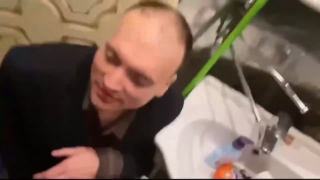 Компашка молодых людей собралась в совмещенном с ванной сортире, громко перебивая друг друга. Речь тут зашла про одну толстую кобылу, которая уговорила своего косоглазого парня, которого называет куколдом, взять деньги друга, чтобы она отсосала ему. Притом, самое мерзкое, что она целует своего пацана в губы после чужого мужского хуя, а это поддатое тело только радуется за счастливого друга. Притом все настолько пьяные, что оператору не удается поймать какую-то точку фокусировки, его руки мечутся из стороны в сторону, а хуец мальца должным образом не приводится в боевую готовность.