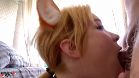 Наша соотечественница очень хотела родиться лисичкой, это теперь ее тотемное животное, а рыжий цвет волос и желание носить лисичьи ушки - не лишнее тому подтверждение. А еще либидо у нее очень повышенное, причем не обязательно самой получать удовольствие, милашка начинает постанывать даже когда сама сосет мужской член. Сейчас съемка принятия на клык ведется крупным планом с видом сбоку. Эксцентричная молодая особь показала пальчиком на высунутый язык, куда нужно спустить любимому. Так он и поступил, а подружка на корточках повернулась к камере похвастаться густой добычей.