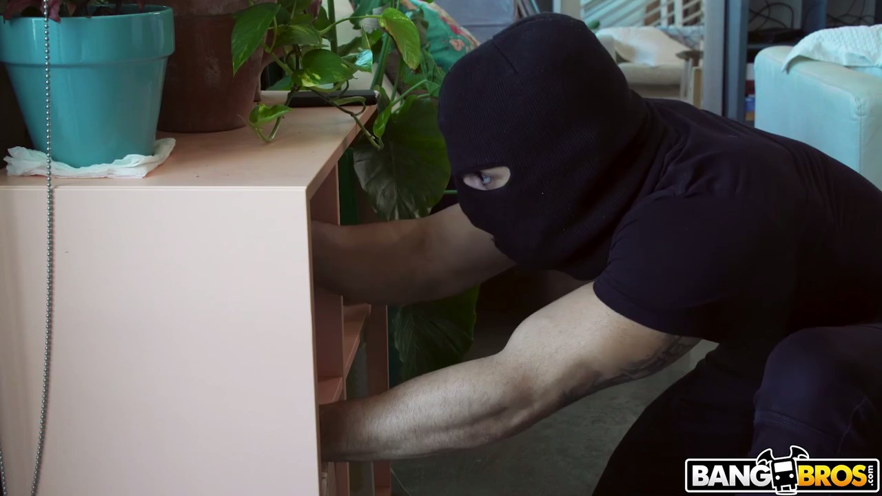 Носатая девушка принимала водные процедуры в душе, потому из-за шума воды не слышала как ее входную дверь взломал вор, начавший сходу искать чем тут можно поживиться в чужой квартире. Но, к его великому сожалению, ничего не оказалось достойного внимания воришки, потому он решил отыграться на хозяйке, которая намыленная трясла сиськами и жопой. Приоткрыв дверь, незнакомец стал подглядывать за своей будущей жертвой, а когда та почувствовала поток холодного воздуха, пошла проверить почему дверь стала вдруг открытой. Именно в этот момент вор-насильник напал сзади, затащил зажав рот обратно в ванную, показал лицо, которое понравилось девушке, связал ее руки вместе и поступил как должен был поступить мужик с потаскухой.