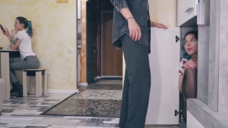 Сестренка спряталась в шкаф, не успев доделать минет, старшая дососала начатоеHD
