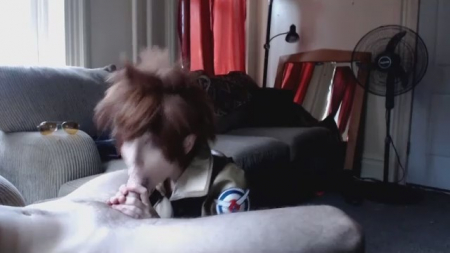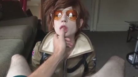 Рыженькая пилотка с приподнятой кверху прической как у персонажа нашумевшей онлайн игры Overwatch Лены Окстон, по которой сделано миллиард фанфиков, порно и прочих косплеев, в свободное время любит пососать писос. Сперва на девушке были желтые очки, а когда она перестала посасывать палец парня и принялась за настоящее дело, тот их снял, чтобы видеть влюбленные глаза, которые не дадут соврать - ей нравится нямкать теплую плоть во рту, брать в руки, слюнявить его. Концовка исходника поломана, почти 100 процентов ей напуляли в ротик дабы повадно не было.
