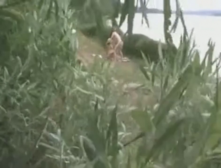 Прогуливаясь по природным местностям, некий хороший гражданин смекнул - намечается тройничок возле озера двух взрослых дядек и одной молодой леди, которой не важен возрастной разбег. Включилась камера и, по возможности, вуайерист из-за кустов записал с увеличением как проходило время незнакомцев возле озера. Сперва девушку ласкали, делали ей кунилингус, потом один давал ей в рот, параллельно друг трахал телку во влагалище, следом они менялись. Под конец ее потрахали стоя, нося прелесть на руках - просто лучшая из лучших и такая доступная, никогда голова не болит, сиськи только обвисшие, зато фигурка хорошая. Хм, плюсы перекрывают минусы. Гандоны, кстати, абсолютно по-скотски выкинули на берегу. Вот гандоны!