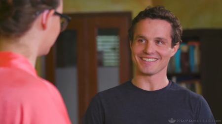 Пошлый парень записался на массаж, издалека поинтересовавшись лично, сможет ли он в рамках дополнительной услуги трахнуть женщину между сисек. Та без каких-либо проблем согласилась, приступив обмазывать маслом тело "нетерпеливого бобра". Клиент уже не может ждать когда его эрегированный член будет удовлетворен, если так и дальше пойдет, то он просто обкончается сам по себе. Массажистка сняла очки, перевернула чувака на спину и стала обслуживать ротиком, руками и грудью, дав трахать вагину с прической на лобке. После этого они еще некоторое время занимались титти-трахом, пока извращенец не спустил между молочных желез.