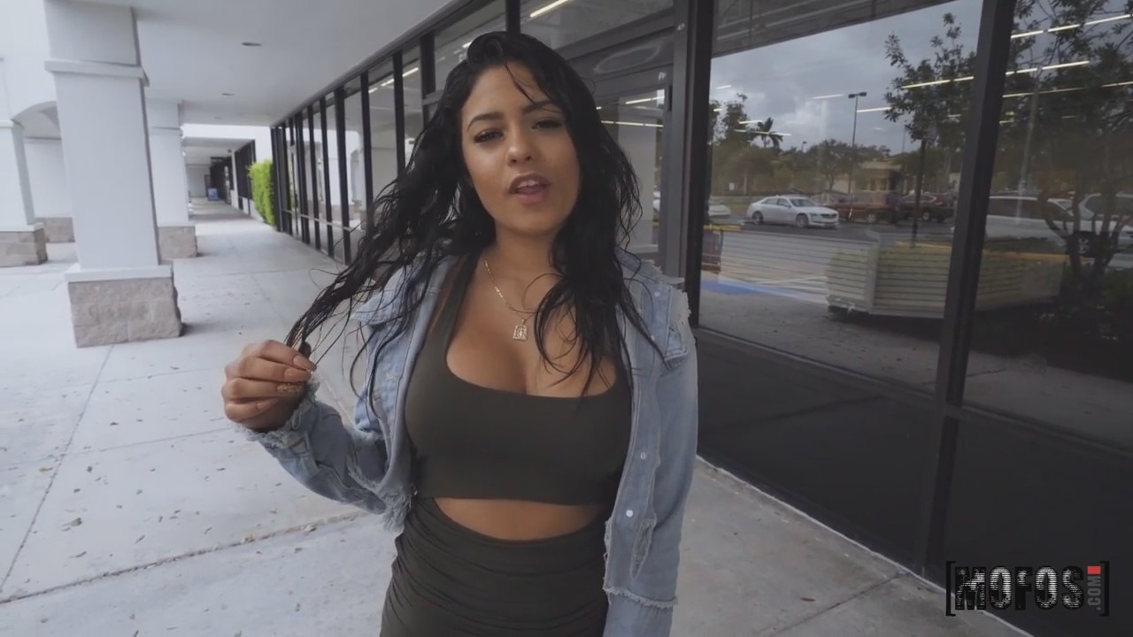 Парнишка не промах - опытным взором заприметил открытую к общению девушку. Она оказалась англоговорящей латинкой, топающей из магазина с пакетами покупок, которые оплатил состоятельный папик. Телочка после пары комплиментов к внешности растаяла, ведь ей редко приходится слышать от старого хрыча что-то позитивное, только деньги, а хочется просто хорошенько потрахаться. Секси брюнетка по пути показала сиськи, происходит мгновение монтажа и новые знакомые без контрацептива уже резво ебутся в постели с видом от лица главного героя, если его так можно назвать.