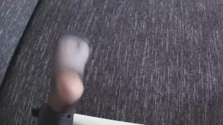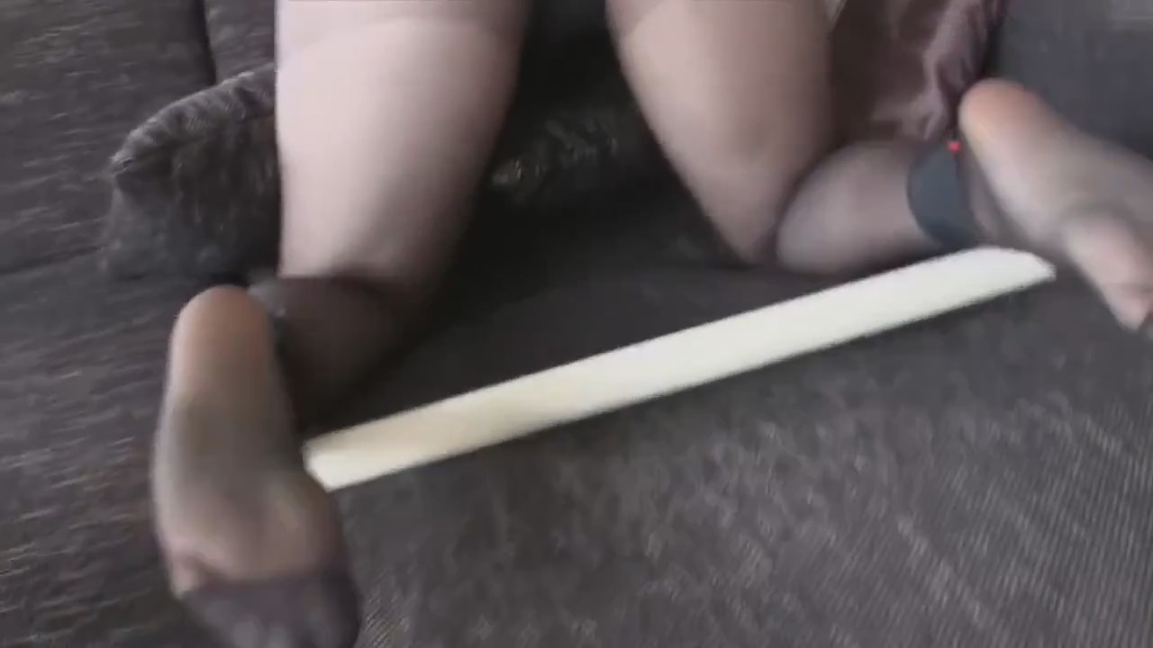 Красивая домашняя пампушка стоит на коленях с заведенными назад руками в наручниках. Ноги зафиксированы по ширине самодельным кандалами из деревяшки и пары ремней. Вынув кляп из беспричинно постанывающего рта, оператор вставляет вместо него свой член. Милаха с проколотой бровью старательно отсасывает, но руками помочь не может. Мужчина обошел сзади зафиксированную немецкую шлюшку, резким движением спустил с задницы колготки и без смазки присунул в задницу. Брюнетка еще сильнее застонала в экстазе, но это продлилось совсем недолго, так как чувак быстро обкончался на ягодицы.
