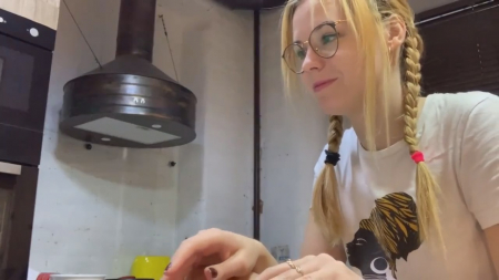 Юная девчина собрала тетрадки, схватила белого плюшевого медведя, посадила его перед собой и начала ему втирать на английском про уроки. Не первый раз студентка играет с медвежонком, но в этот она где-то умудрилась найти микроскопический страпон, будто для кукол. "Я вижу как ты смотришь на меня, я тоже буду смотреть, что это у тебя тут такое?" - вжилась в роль симпатяга с брекетами и в очках, став обсасывать мелкий самотык. Тушку свою пиздючка посадила на кухонный стол, вновь схватила игрушку и стала себя ей трахать, пока не пришлось вытирать намокшую письку по завершении оргазма.