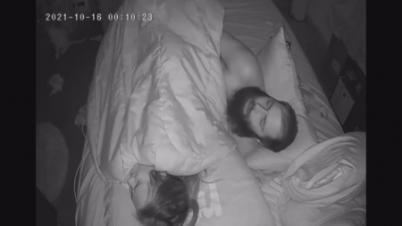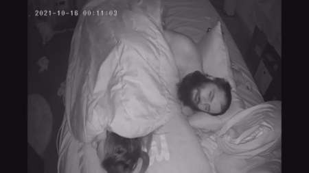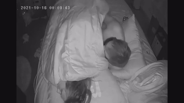 Только первый час ночи, а жена уже легла спать. Муженек пришел голый и с телефоном в руке, которым он подсвечивал свой путь к кровати из другой комнаты, а нам все видно, так как камера оснащена ик-излучателями для ночного видения. Бабенка сперва отвернулась от бородатого, но его это не смутило, под одеялом его хуй оказался в нужной дырочке. Несмотря на общую усталость, подруга сердца все же стонала, чуть взбодрившись от фрикций, терзающих ее деревянное тело. Кончив внутрь, сожитель сфотографировал результат, а дева просто накрылась одеялом и уснула с малафьей внутри.