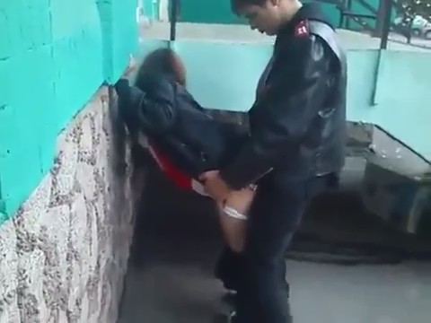 Два пьяных тела выгуливали по улицам города педовку. Пошлые разговорчики и шуточки привели к тому, что телку взяли на слабо: потрахаться где-нибудь в подворотне. Удачным местом оказалась черная лестница жилого многоквартирного дома, где ребята встали сбоку. Самый упоротый и явно с хуем во рту говнарь остался сниматься трахающихся стоя, слушая как телка стонет, отвернув лицо в сторону. Так как это был всего лишь спор, не обязательно оказалось заканчивать дело до конца. Со спущенными штанами подруга говнарей стала собирать манатки с земли, чтобы пойти дальше бесцельно шариться по городку.