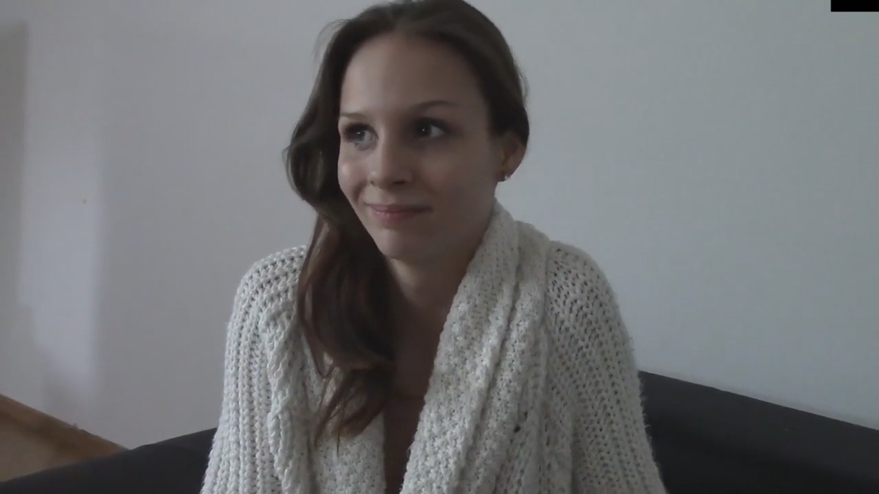Симпатичная девушка любуется на себя в зеркало перед входной дверью. К очаровательной малышке подошел ее бойфренд с видеокамерой и девушка скинула с себя длинный кардиган, оставшись только в длинных гольфах. Стройная симпатяга с манящими формами не оставила равнодушным парня и он конечно же возбудился. А после того, как чикуля отсосала другу, она оказалась жестко выебана в вагину.