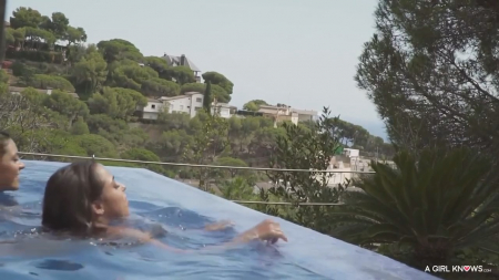 Две молоденькие сожительницы одинаковой фигуры вышли с утра немного погреться под солнцем. Они лесбиянки, потому не стоит удивляться, что они держатся за ручки и много целуются совсем как пара. На заднем дворе у них есть классный бассейн с потрясающим видом на богатый район частных домов. Эдакая американская мечта исполнилась у подружек, решивших заняться любовью прямо на краю бассейна. Из интересного им достаточно собственных языков для кунилингуса и еще черного фаллоимитатора. Ну и как же не потереться кисками друг о дружку, попутно втыкая язычок в попочку?!