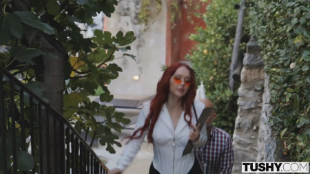 С первых секунд начало общения владельца дома под сдачу и эксперта женского пола не задалось. То одно ей не нравится, то другое, то мужчина споткнулся и выронил сумочку для телефона на пол. Вечером ждал личный банкет со вкусностями, но, попробовав вина, девушка быстро собралась и ушла. На следующий день она должна была проверить другой отель, но тут вновь попался он, почти не скрывающий обиду. Рыжая решила вернуться и поговорить, извиниться, но простой поцелуй преобразился в страстный анальный секс. Вначале нам показали как новые знакомые рассекают на мотоцикле, где пассажирка едет голой.
