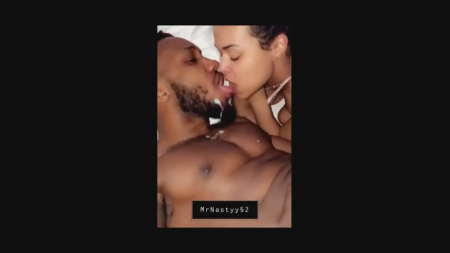 Длинночлен мастурбирует, присосавшись губами к своей смуглой подружке. Он и сам черный, так что не удивительно, что вместо пениса у него огромная труба, из которой он мощно кончает себе на лицо, снимая сбоку на мобильный телефон. Голая девушка размазывает рукой сперму ему по бороде и продолжает вкусно целоваться, не прикоснувшись к его гигантской змеевидной штуковине, а зря.